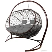 Диван подвесной M-Group Лежебока / 11180209 (с коричневым ротангом/серая подушка)